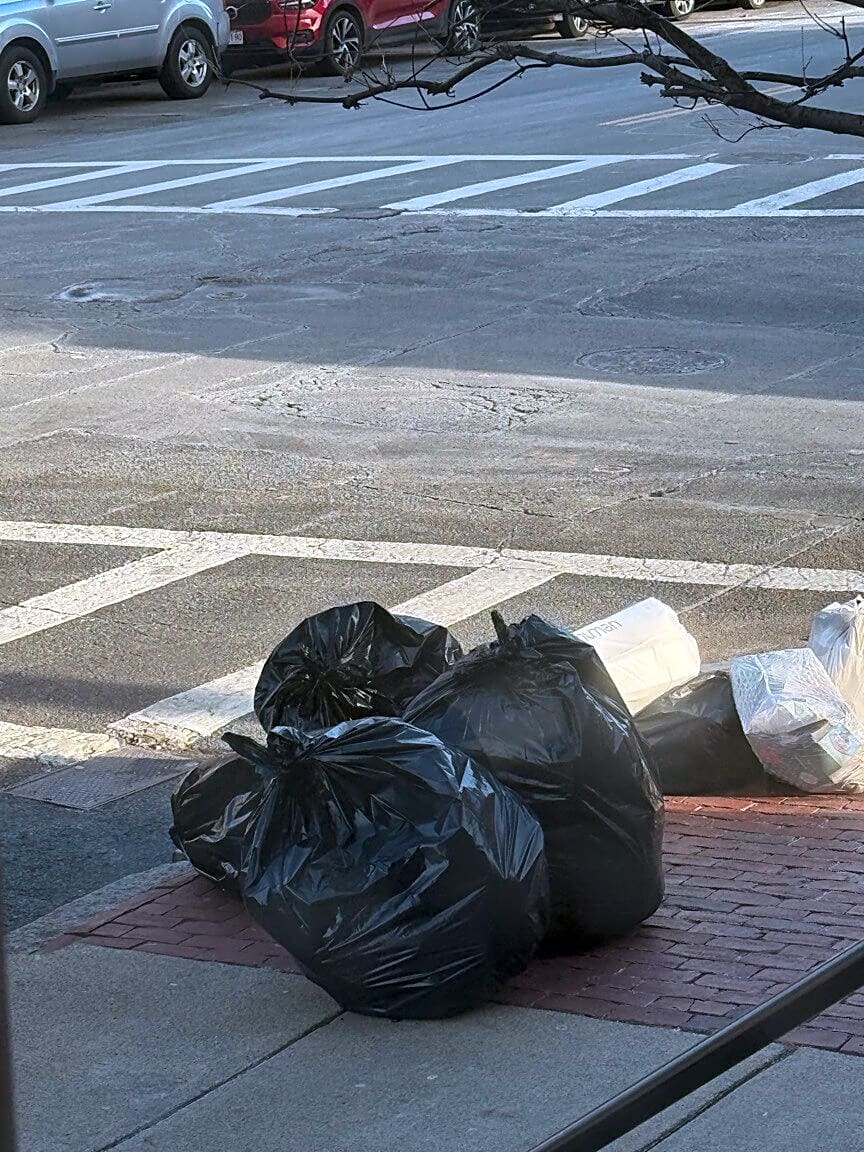 4459 Washington St, Roslindale, Ma, 02131Trash cans are still on the sidewalk a day after trash pick up.