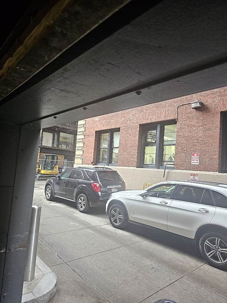 Intersection Of Gloucester St And Boylston St, Boston, MaTrucks double parked both sides of street, scooters doing 30 mph down the bike lane!!! Nice job Wu! Clean up this dump of a city!