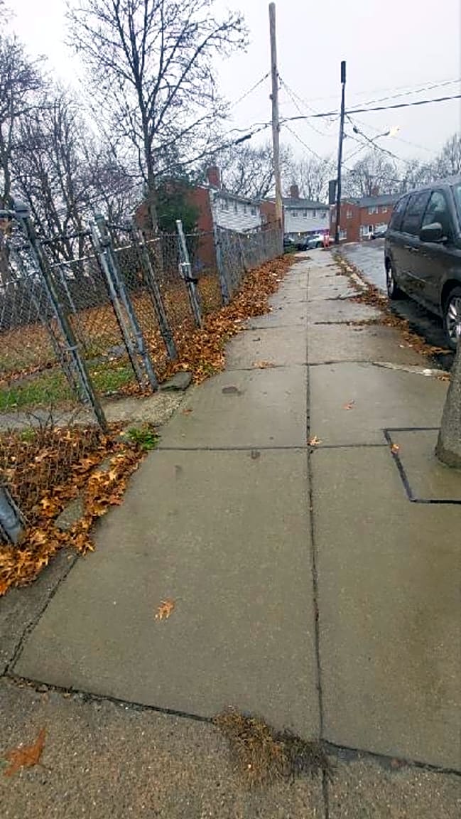 - Property conditions interfere with sidewalk passage | Details: [Const. states there is an ongoing issue with leaves all over this property and spilling onto the sidewalk]