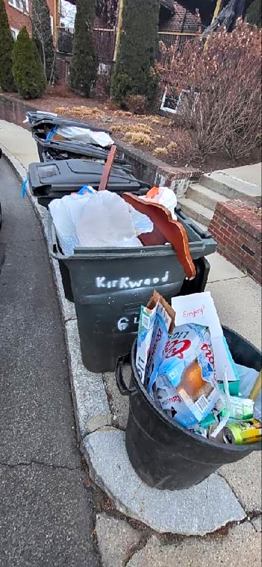 - Improperly stored trash in back and along back corner of house