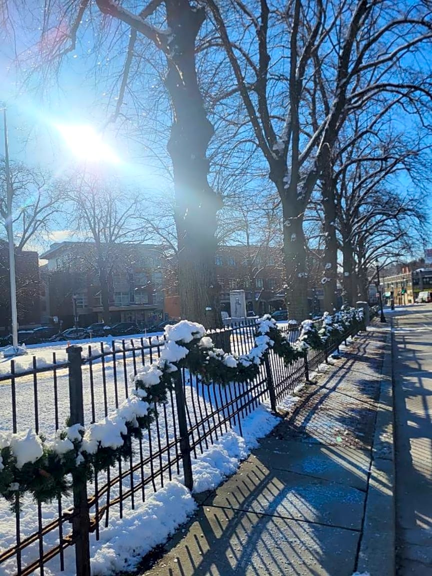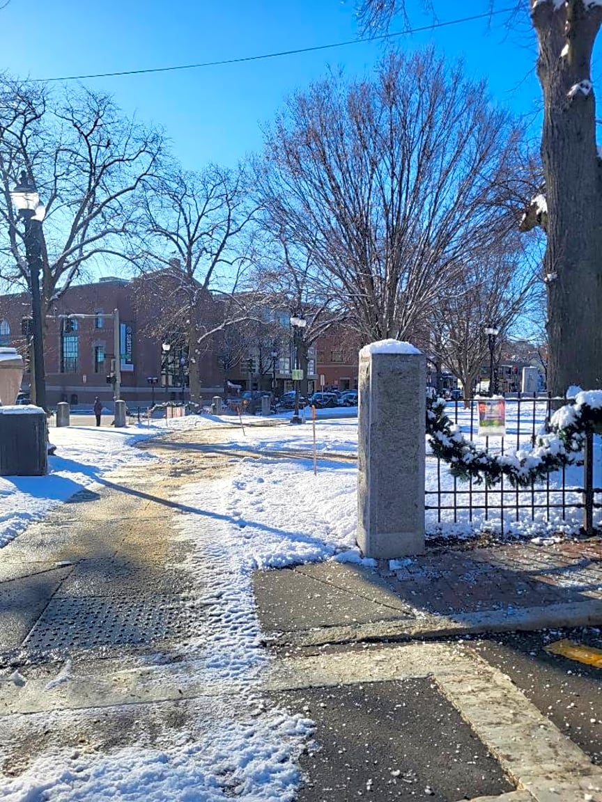 - Adams park in roslindale is very icy. I fell down this morning and worry others will as well.