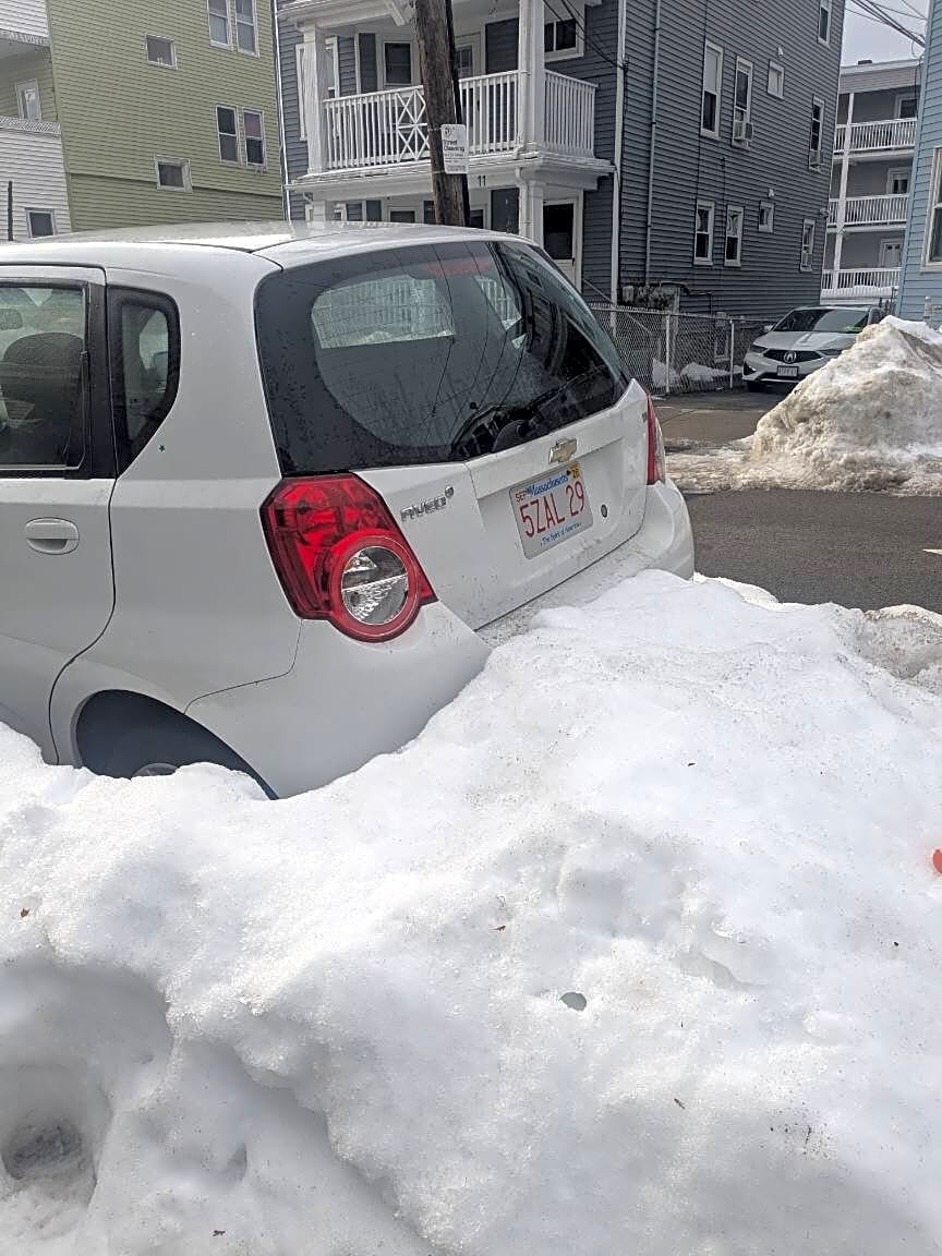- Abandoned WHITE CHEVY AVEO MA 5ZAL29 parked for at least a month and a half.