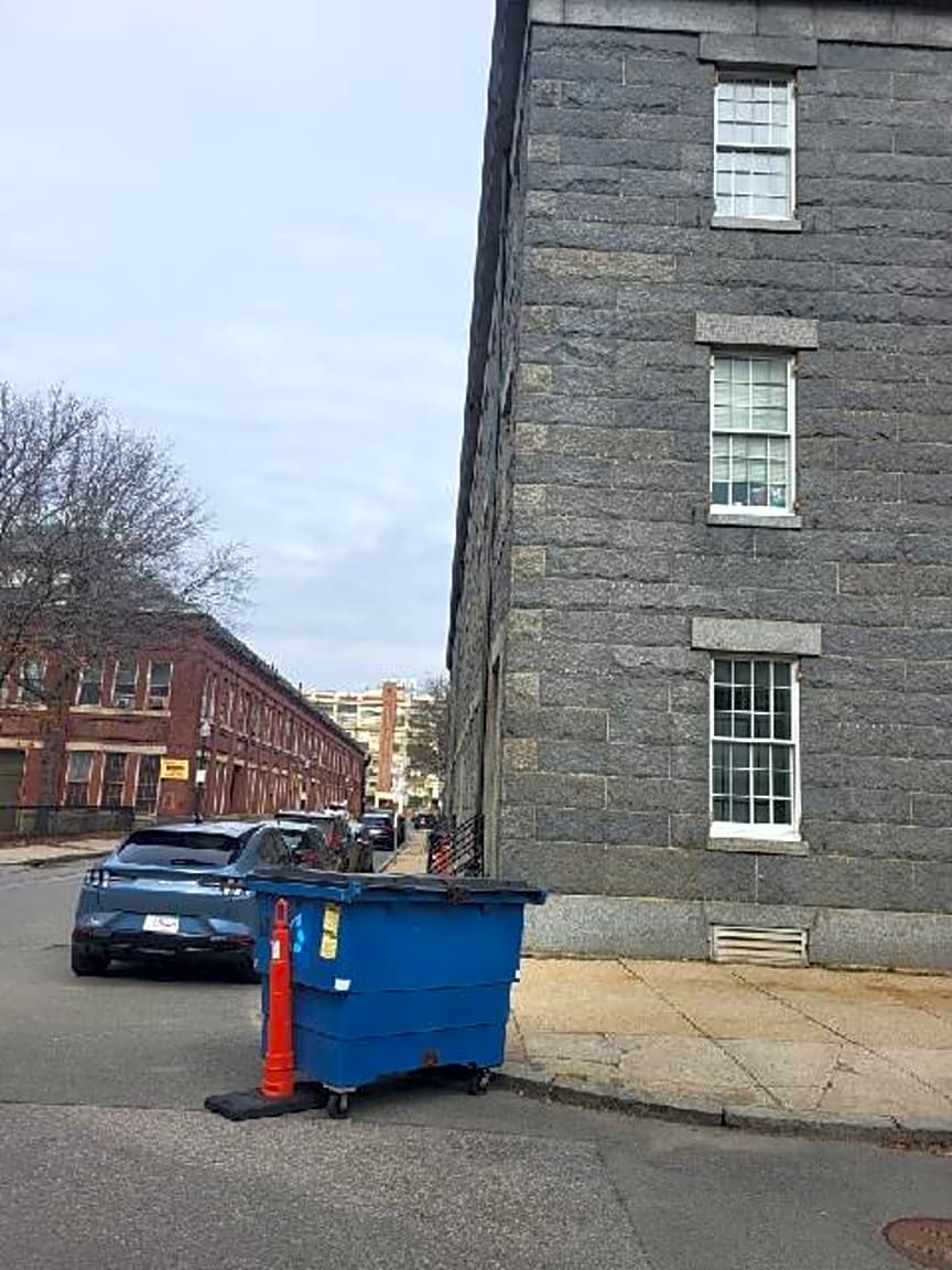 - On 6th Street in the Charlestown navy yard. The building at 33 3rd ave leaves their dumpster in the street taking up a meter spot.thry have also blown across the road multiple timed and dumped trash on the ground