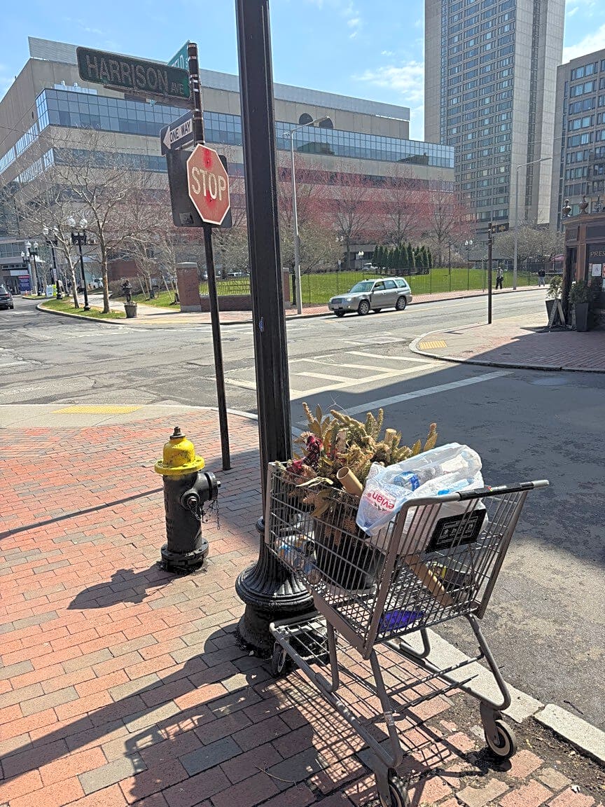 - Shopping cart with trash needs to be picked up