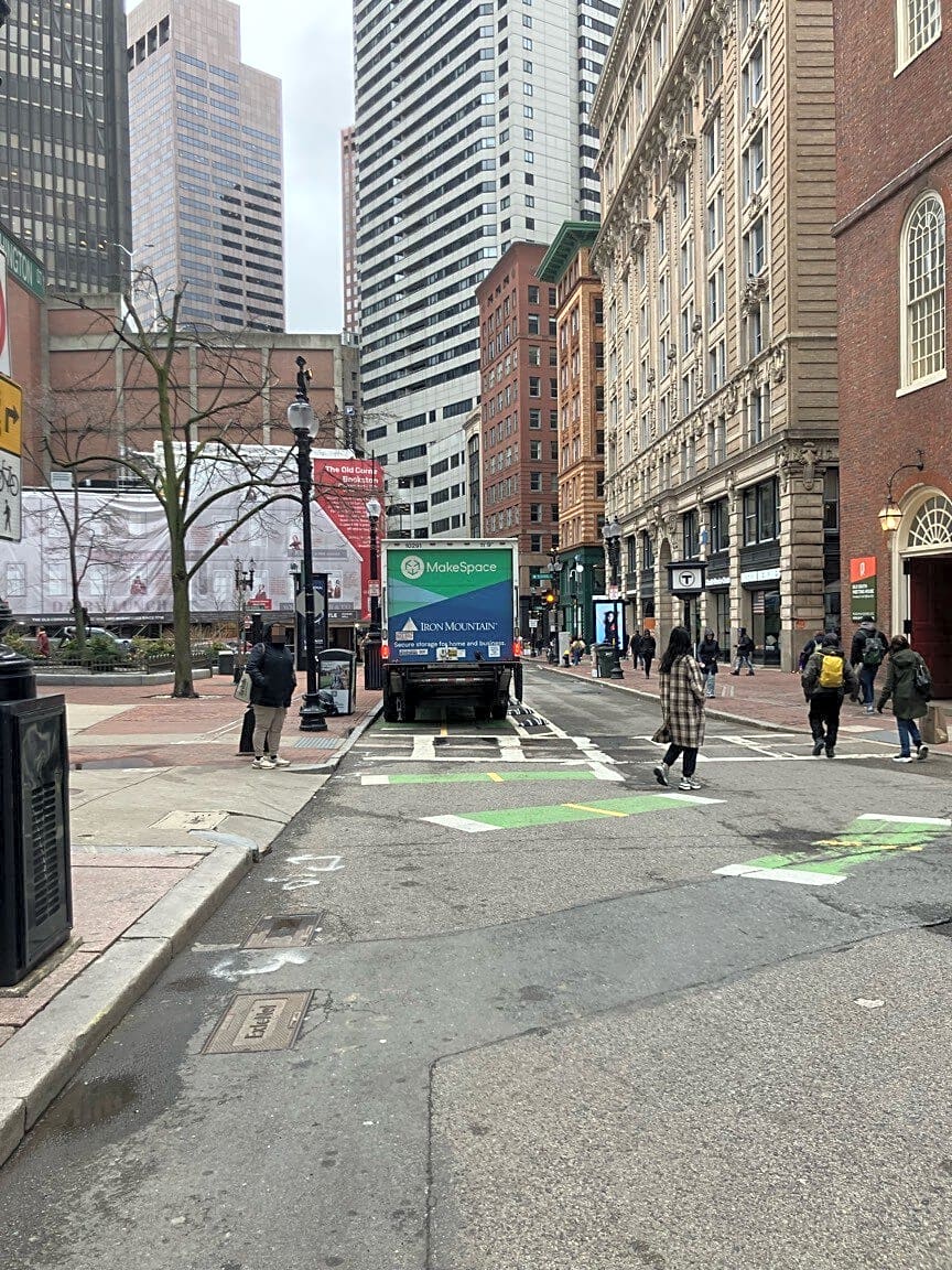 Intersection Of Harvard Pl And Washington St, Boston, MaWhere is the protection? We need concrete and we need a flexpost on the centerline. This is such a downgrade.