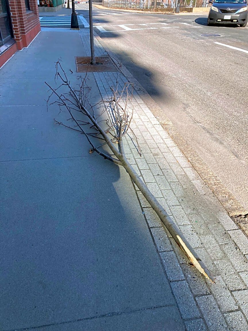 100-112 Shawmut Ave, Boston, MA 02118Broken young tree near the intersection of Shawmut Avenue and Herald Street. This was taken on Sunday, 4/2/26, so I’m not sure if someone has already addressed this yet.