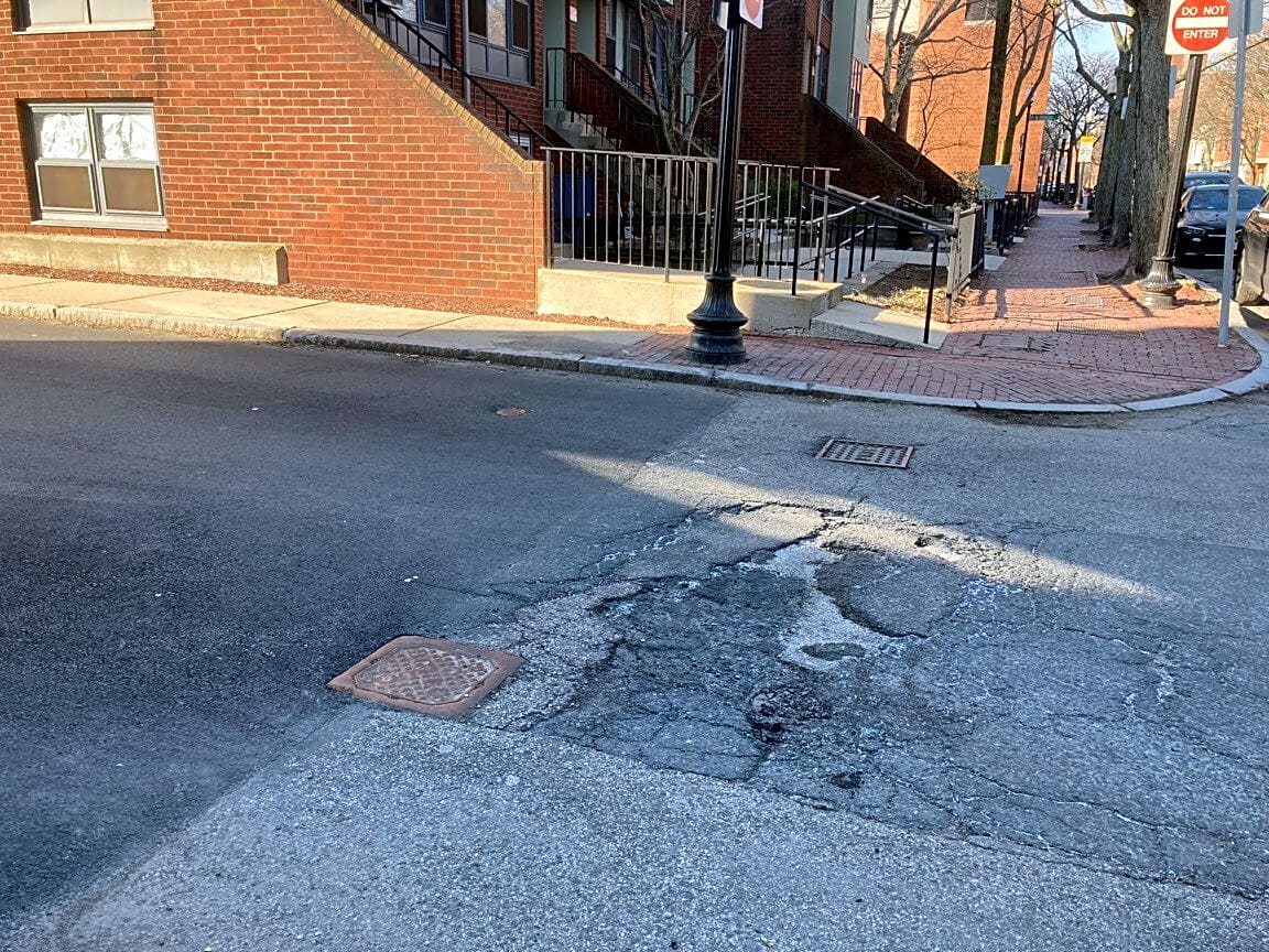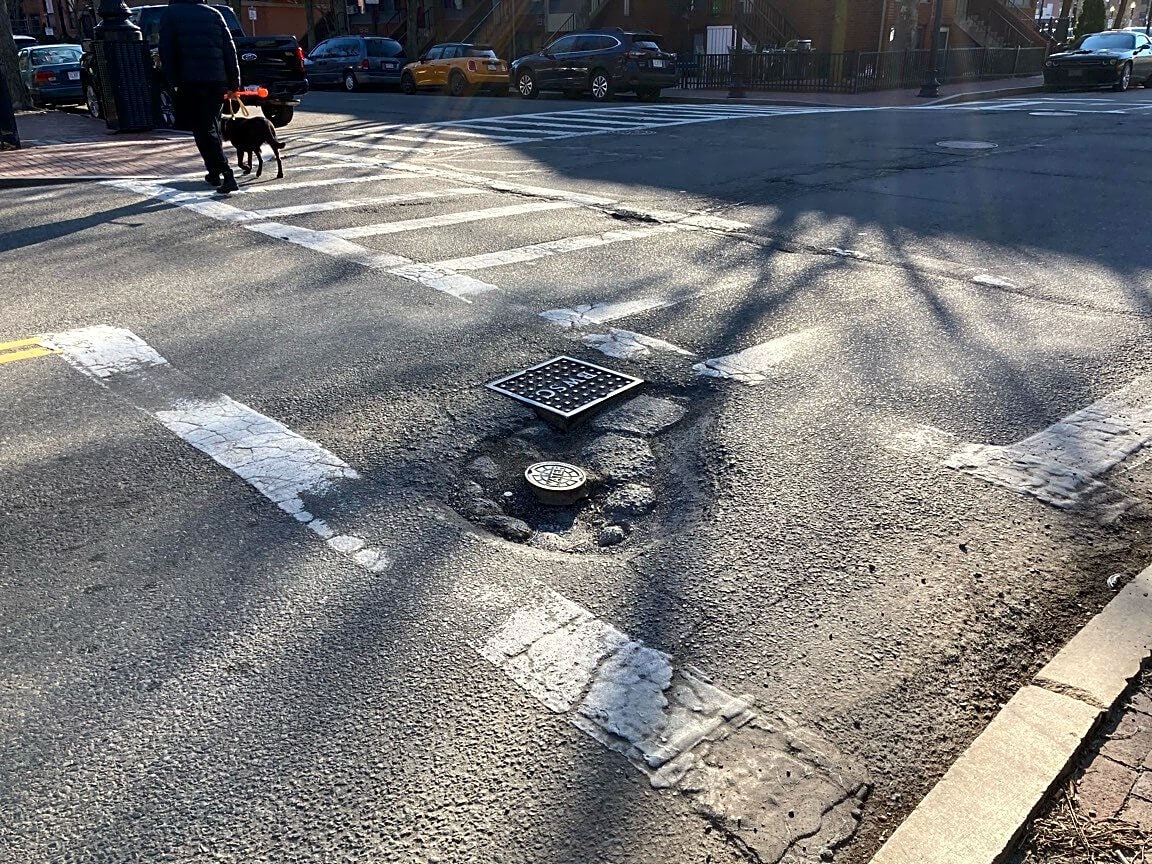 Intersection Of W Dedham St And Shawmut Ave, Roxbury, MaA couple big potholes at the intersection of West Dedham Street and Shawmut Avenue.