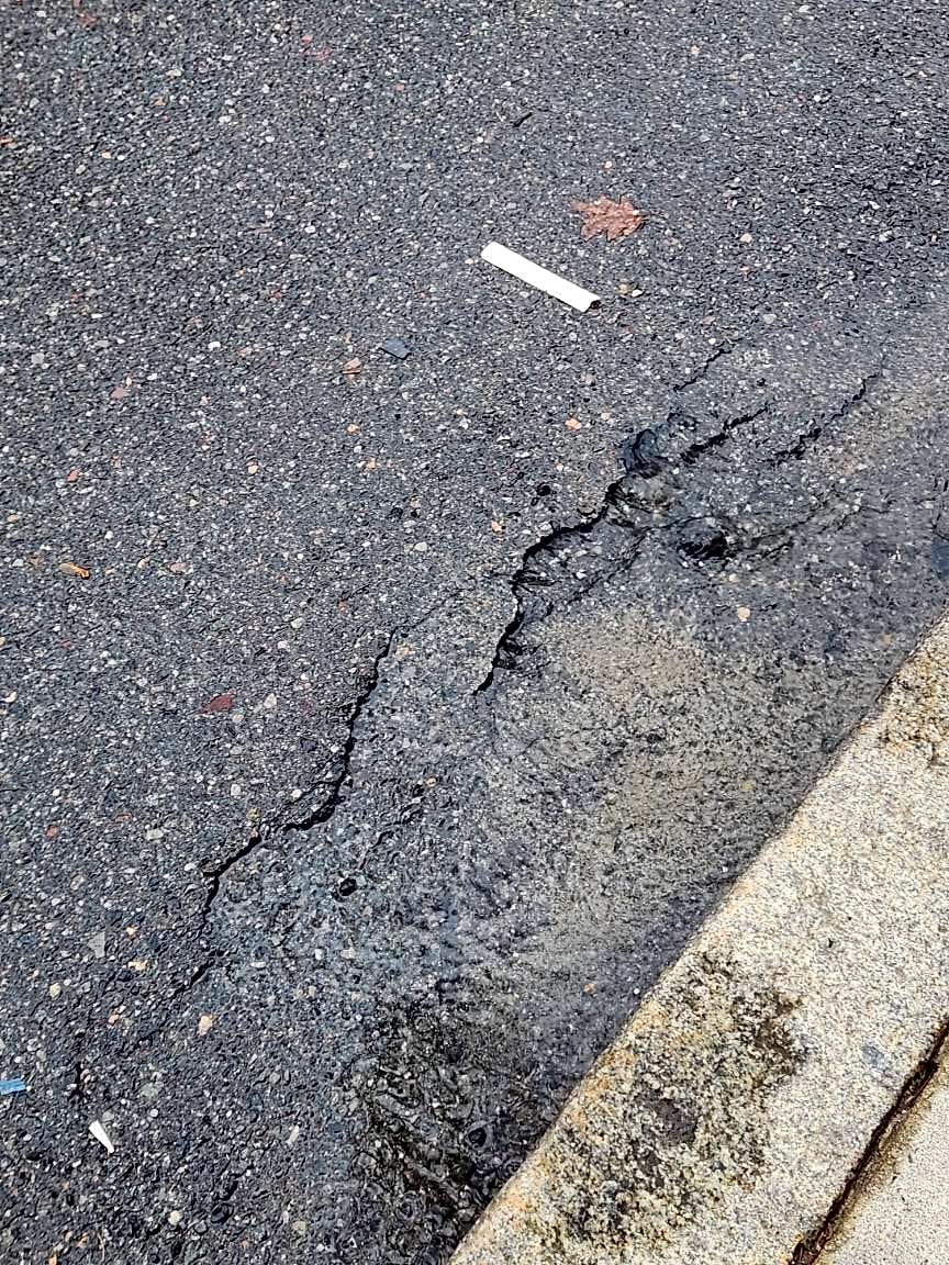 Intersection Of Pelham St And Shawmut Ave, Roxbury, MaBad pothole (?) or cracks near the intersection of Pelham Street and Shawmut Avenue.