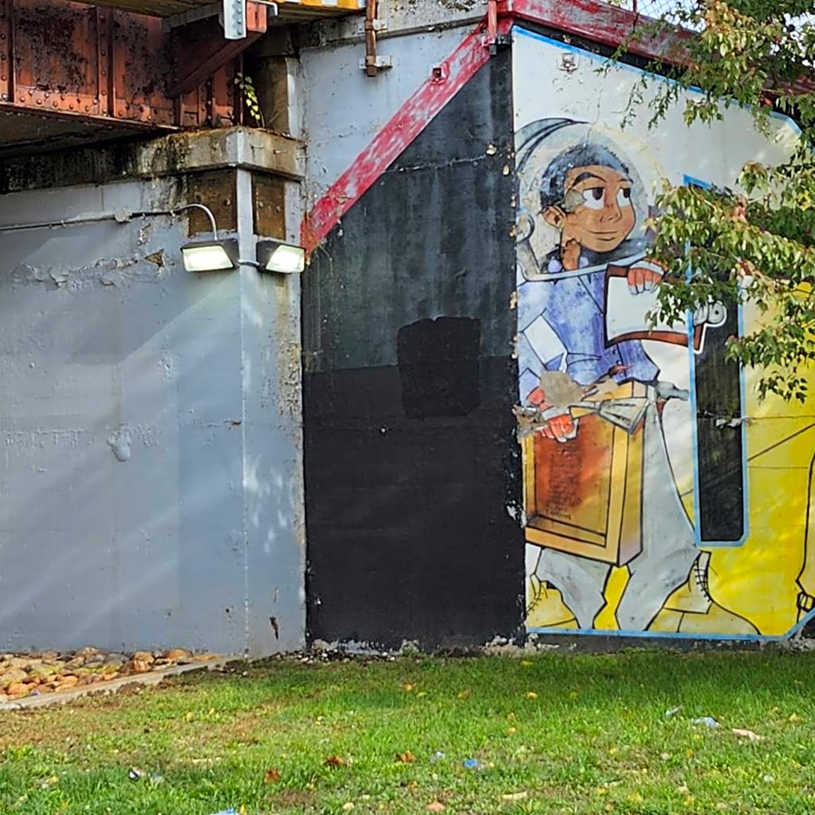 CLOSED #101006324796Resolved. The City of Boston property management department has removed the graffiti from this location with a pressure washer.