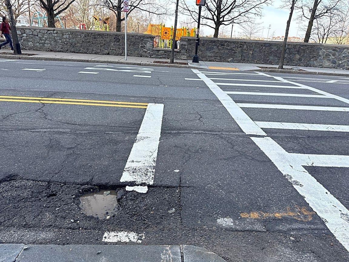 Intersection Of Riverdale St And Western Ave, Allston, MaPothole in road