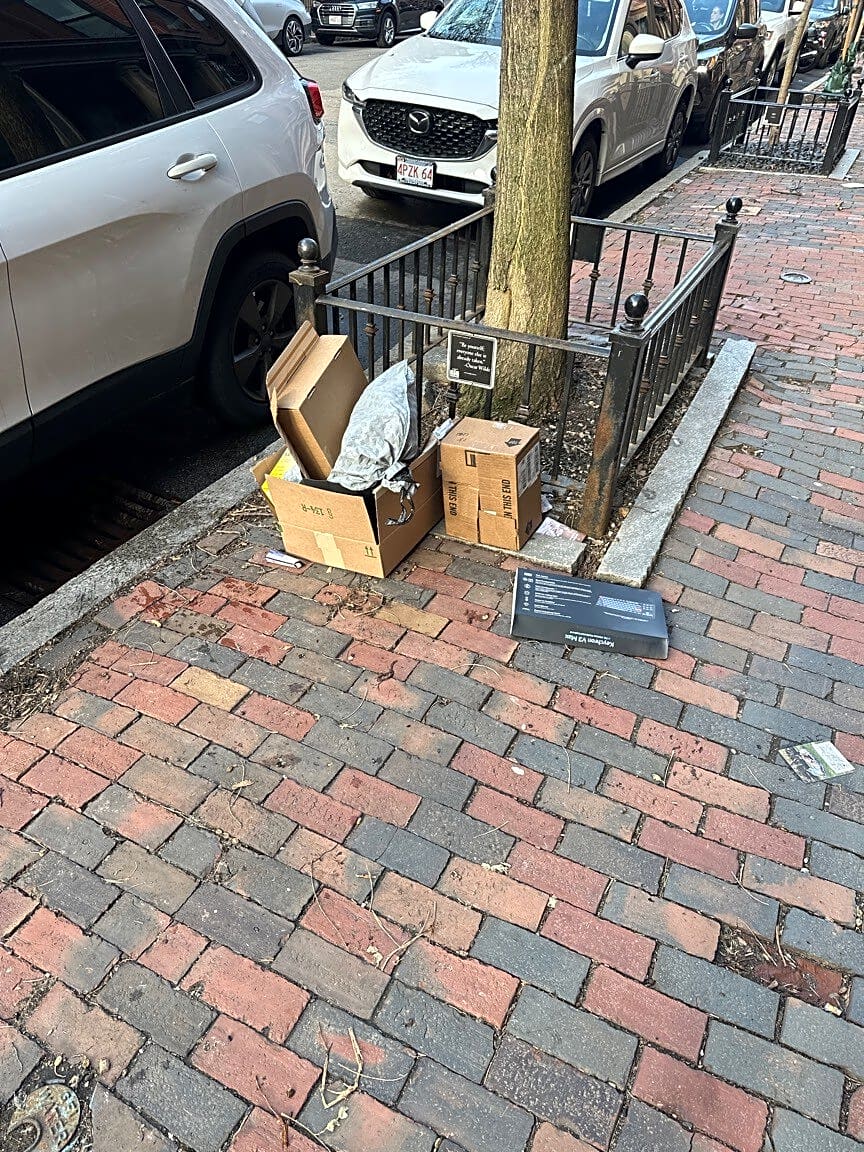 Intersection Of Chandler St And Cazenove St, Boston, MaTrash in sidewalk