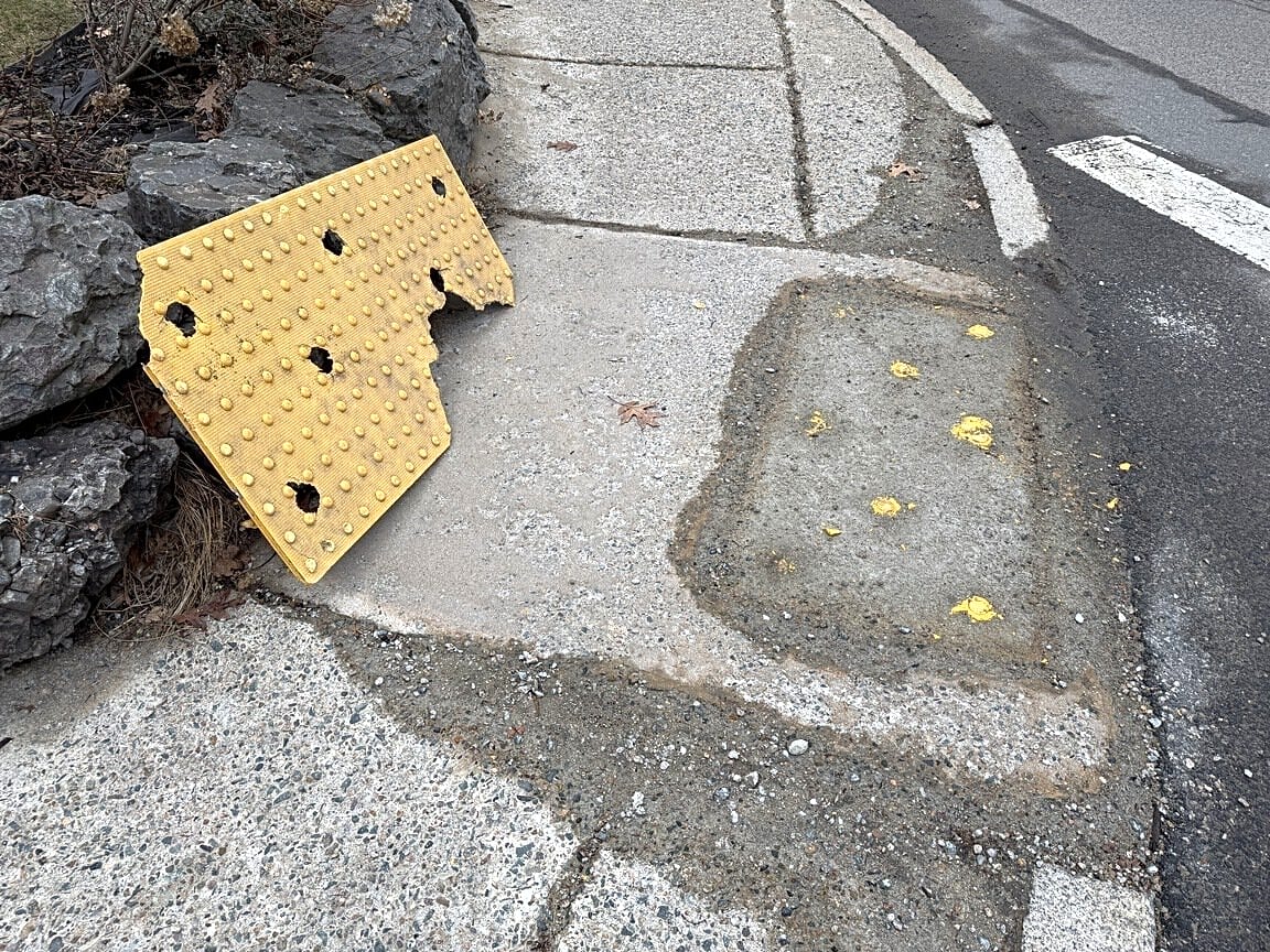 Intersection Of Peter Parley Rd And Sigourney St And Walnut Ave, Jamaica Plain, MaAda tactile mat broken