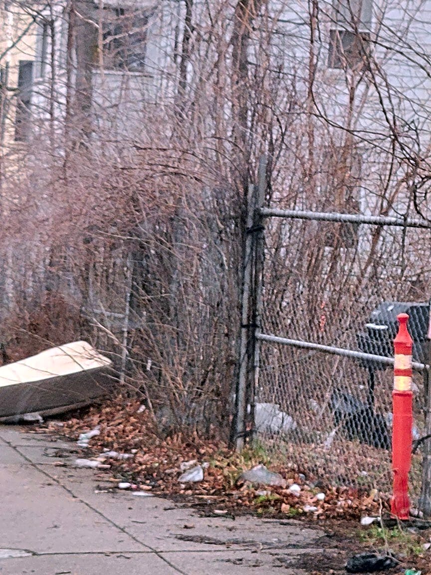42 Greenville St, Roxbury, Ma, 02119This property is not being maintained. Trash and leaves from the lot are spilling onto the sidewalk, creating an unsanitary condition. Vegetation along the fence line is overgrown, with bushes and branches encroaching onto the sidewalk and obstructing pedestrian access. Requesting inspection, cleanup of debris, and trimming of overgrown vegetation.