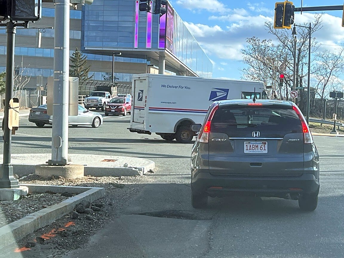 Intersection Of Leo M Birmingham Pkwy And Lincoln St And Market St, Brighton, MaLarge pothole