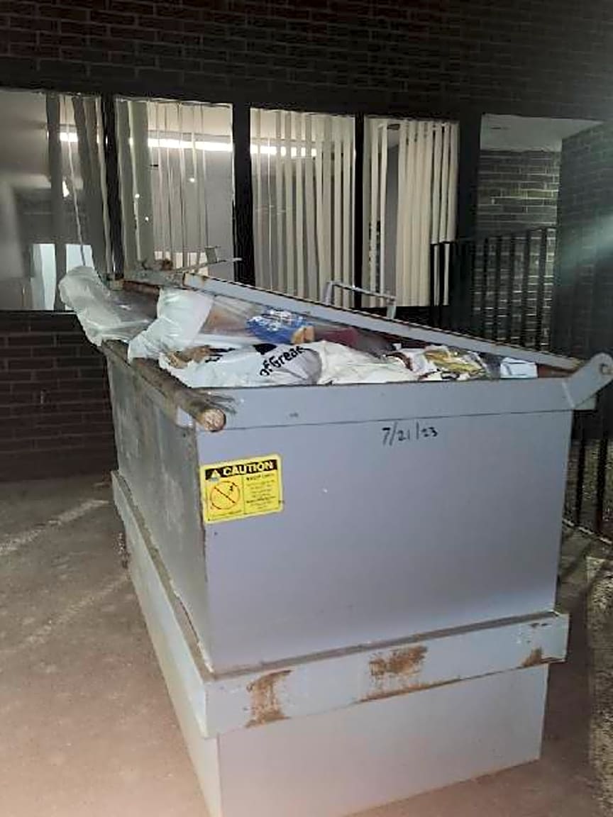 CLOSED #101006603887Noted. Overloaded dumpster at the rear of property citation was issued at location.