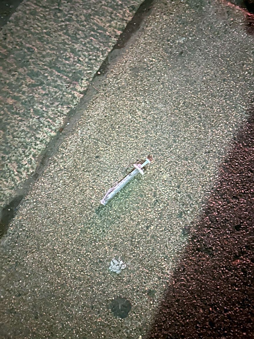 32 A Perkins St, Jamaica Plain, Ma, 02130Broken syringe on the sidewalk.