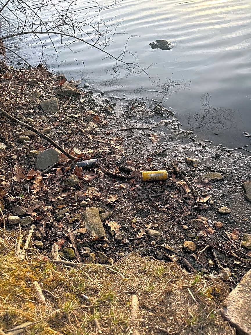Intersection Of Craftson Way And Jamaicaway, Jamaica Plain, MaTrash along water of olmstead park