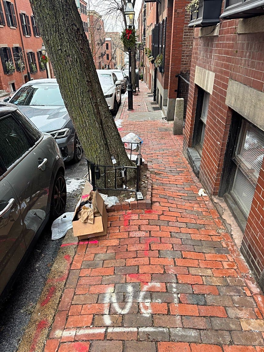 107 Pinckney St, Boston, Ma, 02114107 Pinckney: Trash on sidewalk