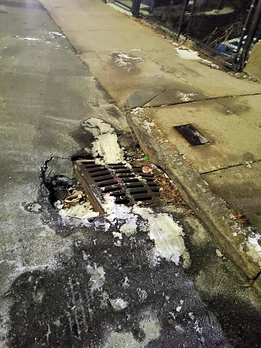 Intersection Of Lexington St And Meridian St, East Boston, MaCover is sinking creating a big divit