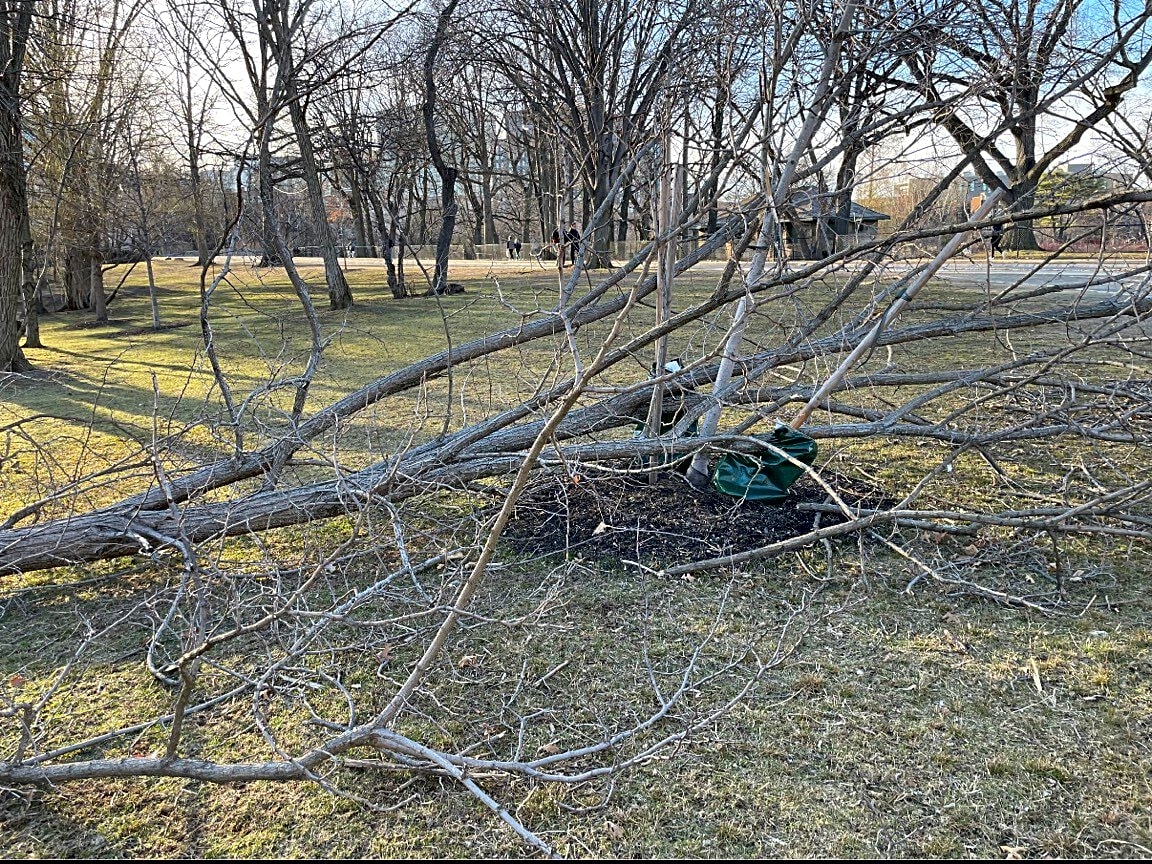Agassiz Rd & Park DrSmall tree down next to the Muddy River, Agassiz Road, across from the Duck House.