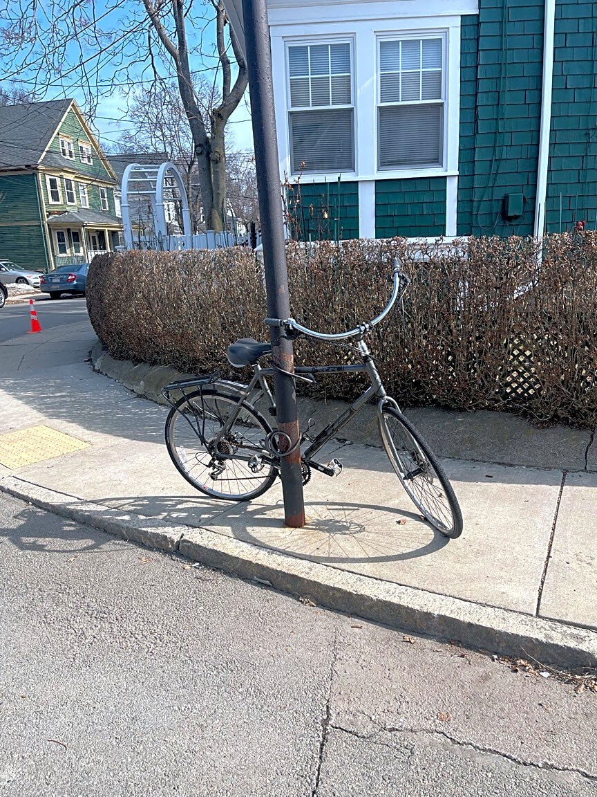 Intersection Of Adelaide St And Boylston St, Jamaica Plain, MaAbandoned bicycle corner of Adelaide and Boylston in Jamaica Plain