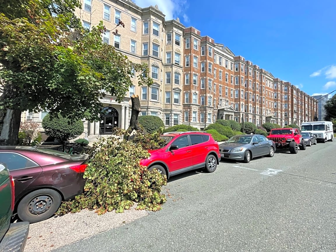 1235 Vfw Pkwy, West Roxbury, Ma, 02132What public way is blocked: [Sidewalk] The police on the scene: [Yes] Type of blockage: [Limb] Limb/branch broken, but still attached to the tree: [No]