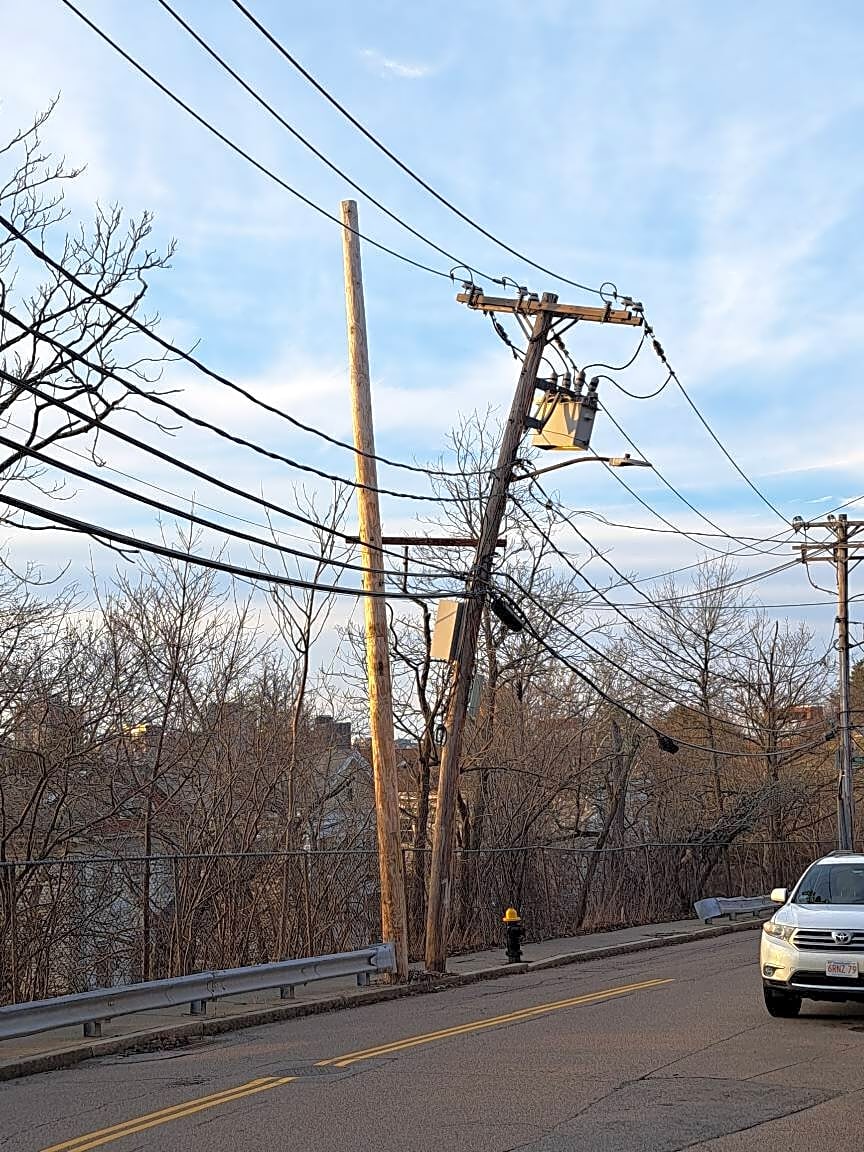 Intersection Of Merton Pl And Centre St, Roxbury, MaEletric pole collapsing