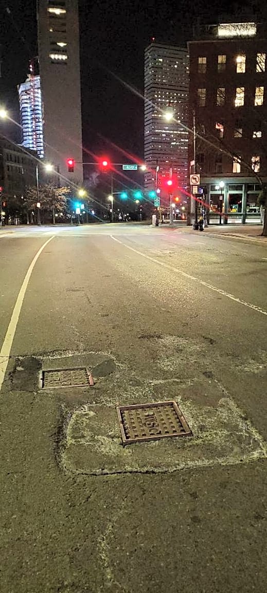 101 Corey St, West Roxbury, Ma, 02132Pohtole. Around water manhole cover | Utility Company: [BWSC (Boston Water & Sewer Commission)]