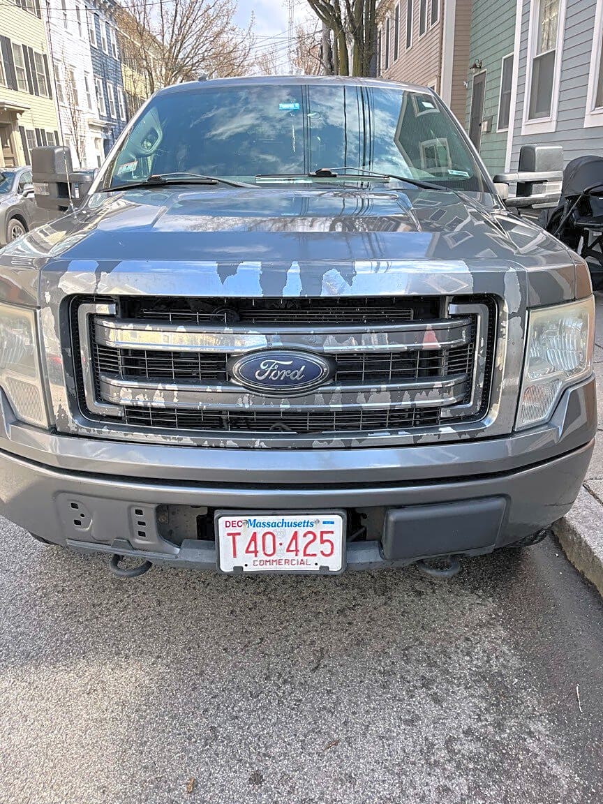 42 Russell St, Charlestown, Ma, 02129contractor vehicle | How is the car parked illegally: [Blocking hydrant] Make: [Ford] Model: [Pickup] Color: [GreySilver] Vehicle License Plate Registration: [t40425]