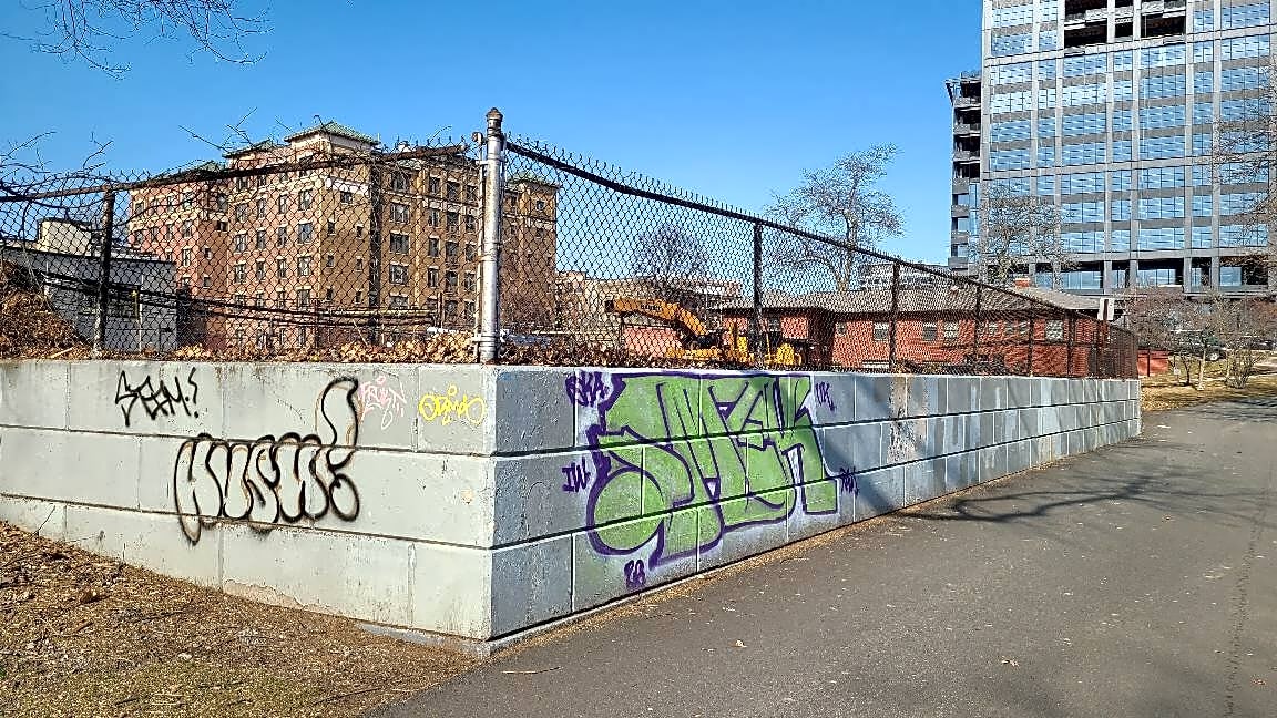 440 Park Dr, Boston, Ma, 02215Graffiti on wall of service yard along path in the Emerald Necklace.