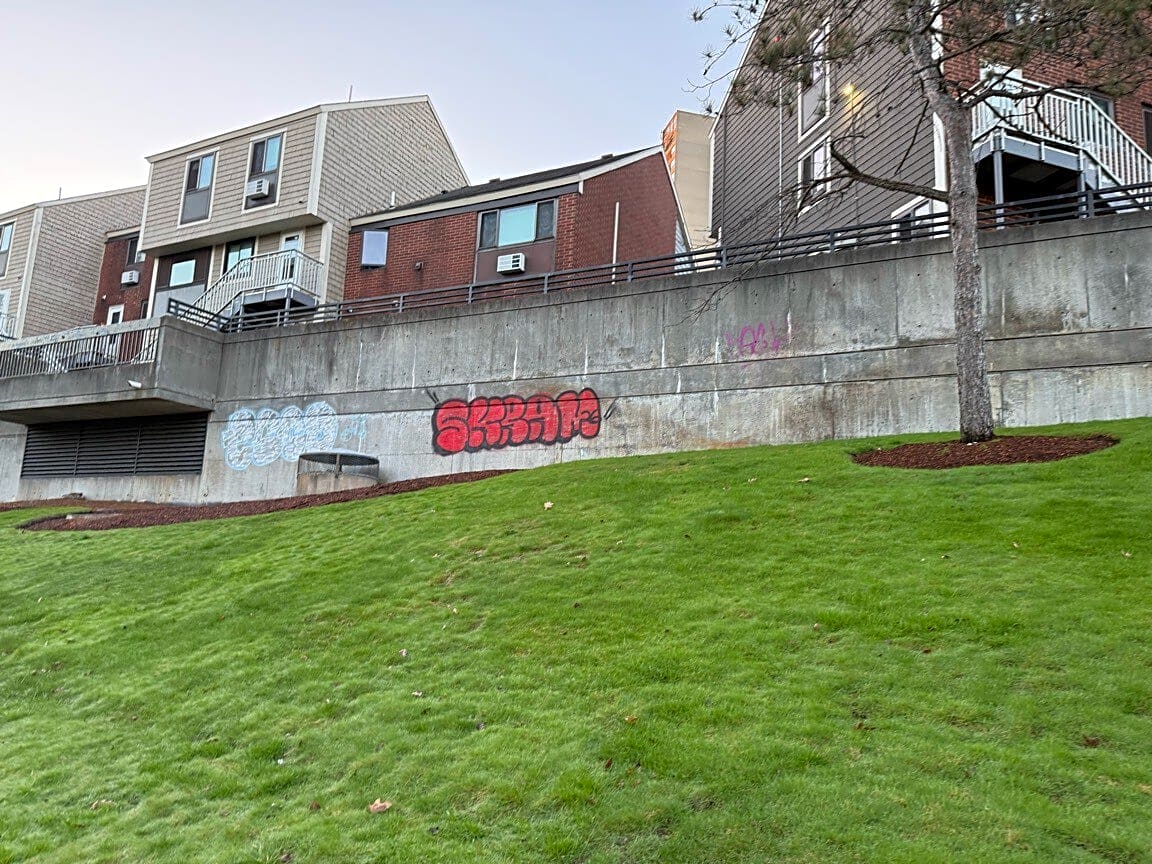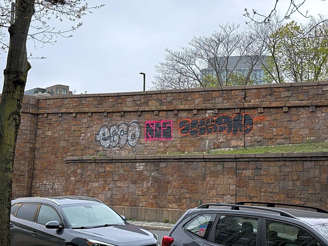390 394 Riverway , Boston, Ma, 02115New Graffiti has been placed on our street in two locations. The first location is the east side of stone bridge abutment of the Riverway. The photos are taken standing in front of 394 Riverway. The second photo (taken a few days ago here more graffiti was added last night) is on the retaining wall of the Mission Park housing development. The photo is taken from the Riverway. Thank you for time in helping to clean things up, it’s appreciated.