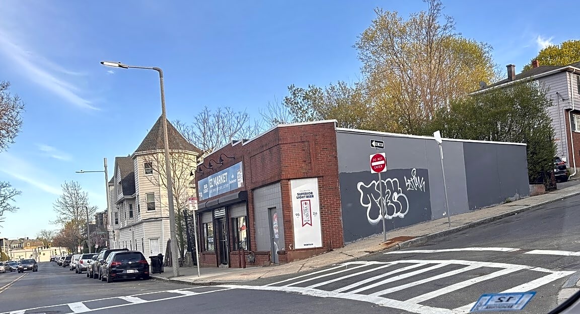 77 Stoughton St, Dorchester, Ma, 02125Graffiti on EZ market on side of building located at 77 Stoughton Street Dorchester