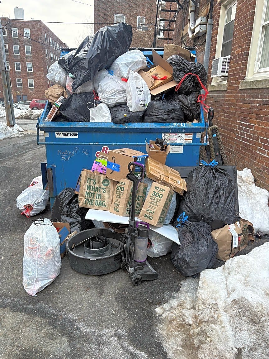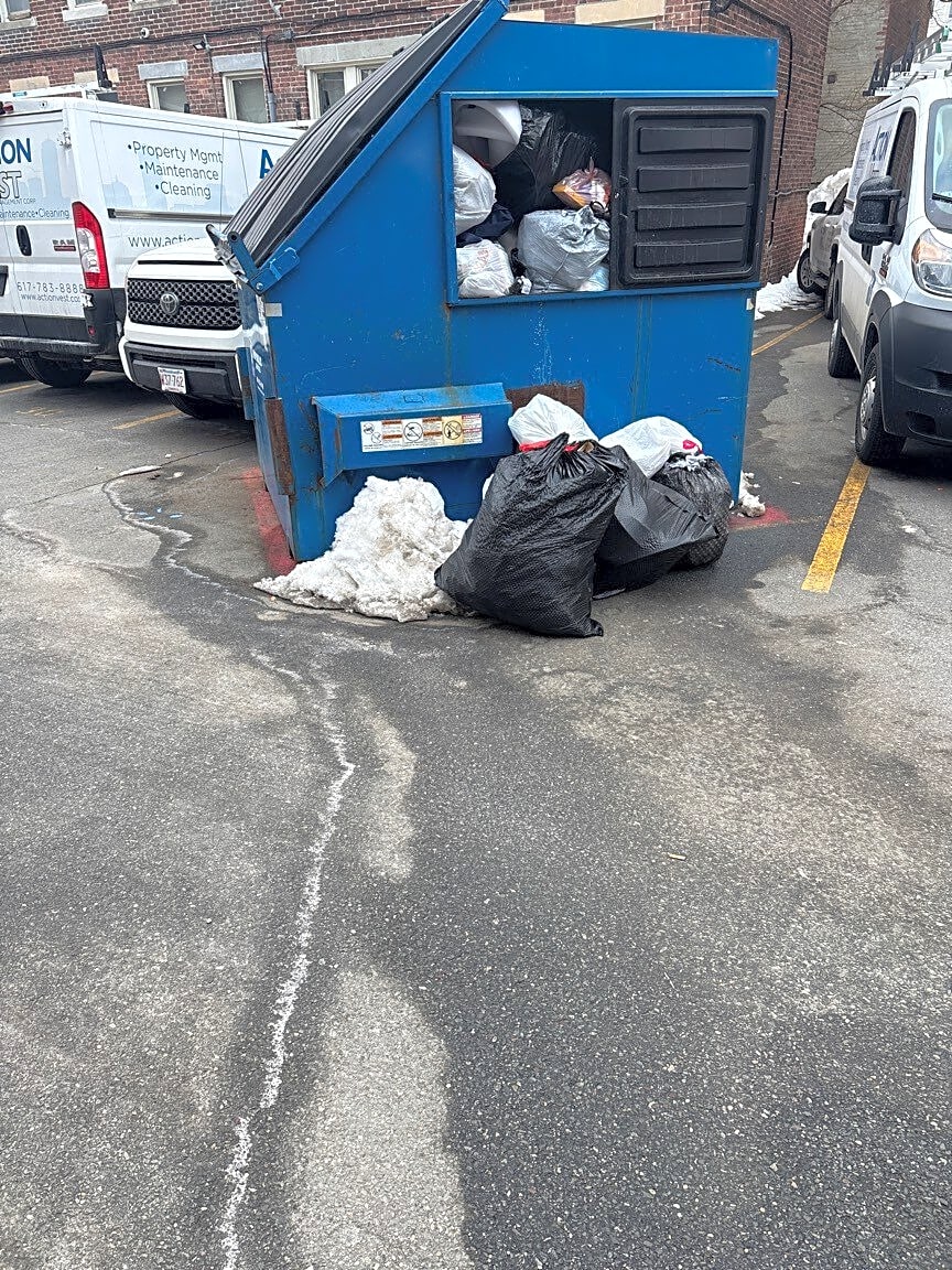 4 Ransom Rd, Brighton, Ma, 02135All dumpsters behind Brighton place - 1625 commonwealth Ave are overflowing. Trash is scattered.