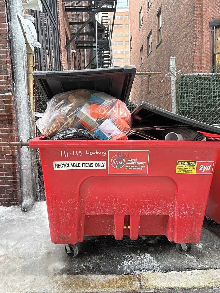 Intersection Of Public Alley No. 301 And Mount Vernon Sq, Boston, MaTrash overflowing and attracting rats. FINDING THE ADDRESS: Address is 86 Charles Street, but the trash bins are located in the BACK of the building on Mt Vernon Sq in Public Alley 301, in between 6 Mt Vernon Sq and 10 Mt Vernon Sq. You will see the trash cans and a black door with "86" on it. NOTE: New owners took over in November. This building is now owned by CEI Realty, LLC at 101 Federal St, Unit 1900, 02110.it is managed by Suffolk Property Management. __ ISSUE: Ongoing issue with landlord refusing to manage trash properly. It is stored illegally next to resident windows and is constantly overflowing attracting rats, smells, mice, and flies. Past and current landlords refused to address it for past 4 years despite being apprised in writing of the CMR 410s they are in violation of.