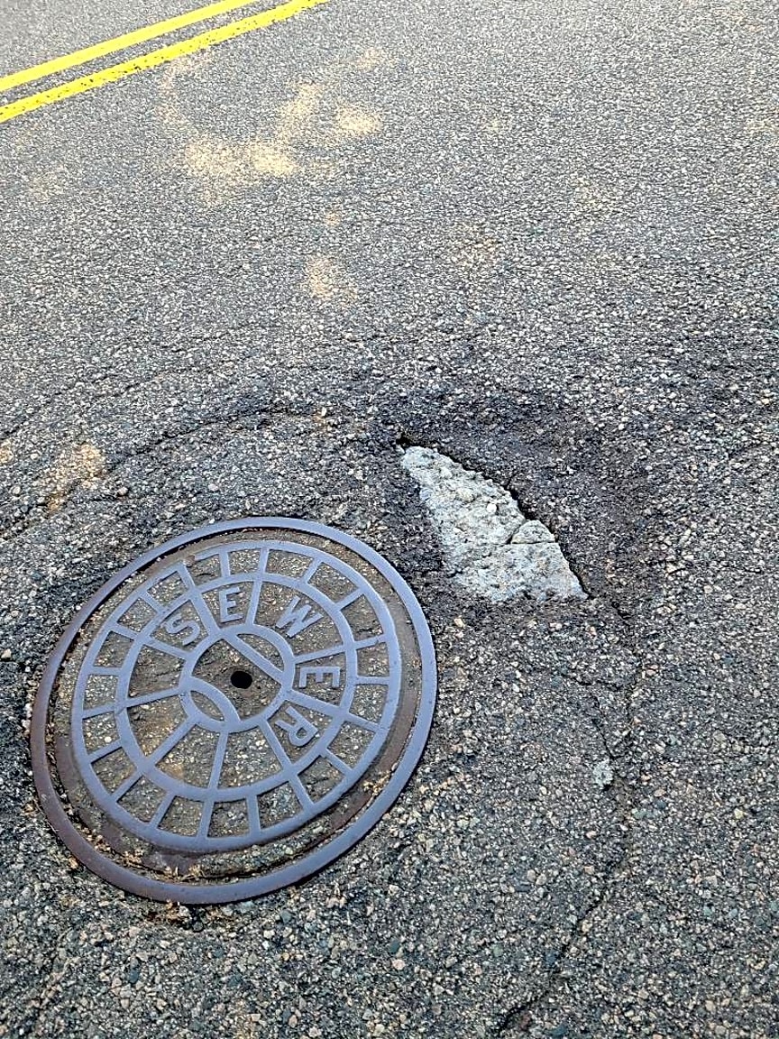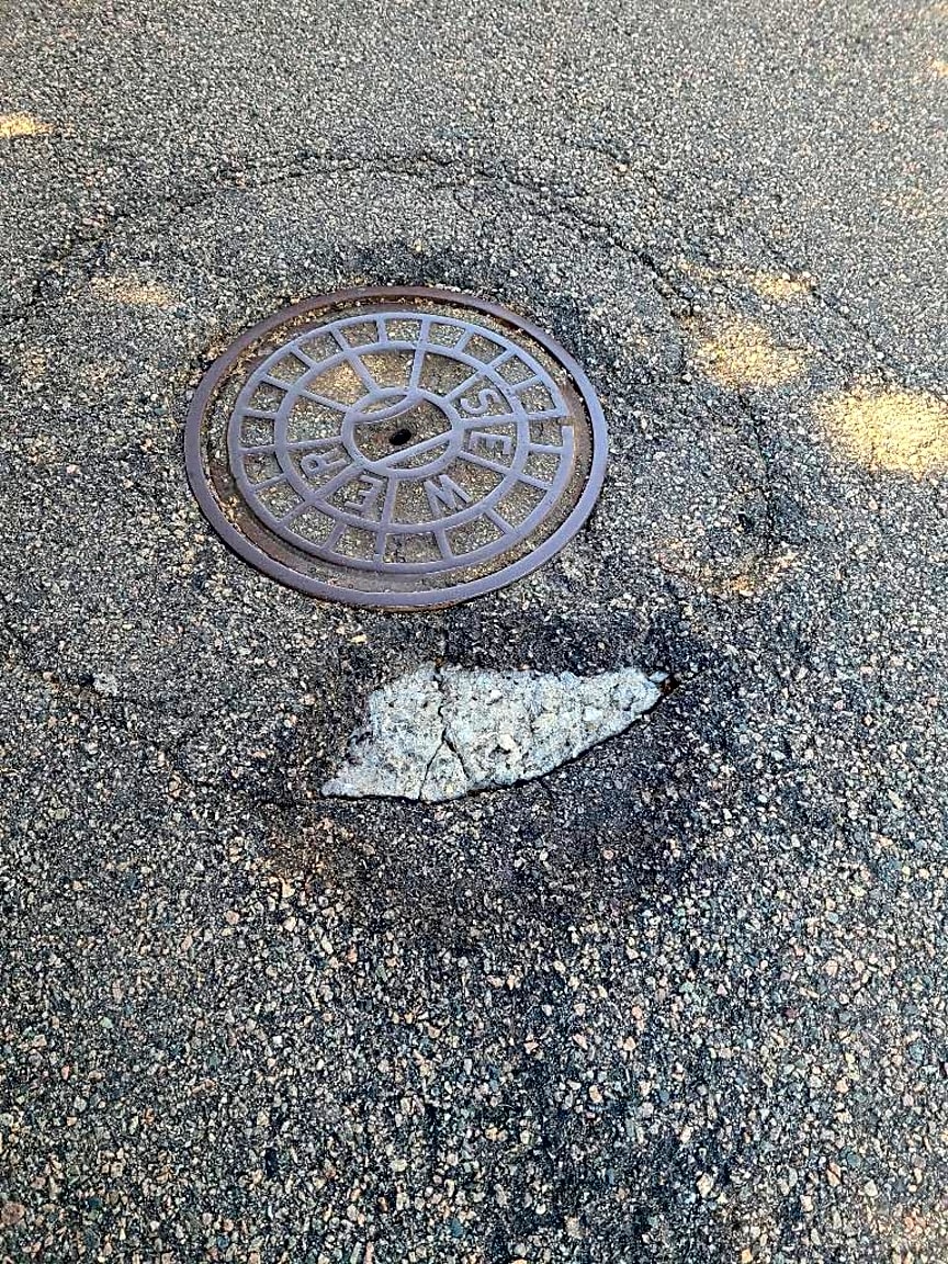 142 Walworth St, Roslindale, Ma, 02131Pothole around manhole cover belonging to bwsc